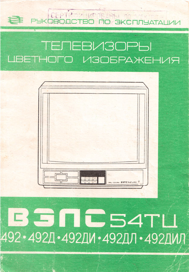 Телевизор цветного изображения *ВЭЛС 54ТЦ-492* выпускался предположительно с 1993 года Воронежским ПО *Электросигнал*. Описание в инструкции.