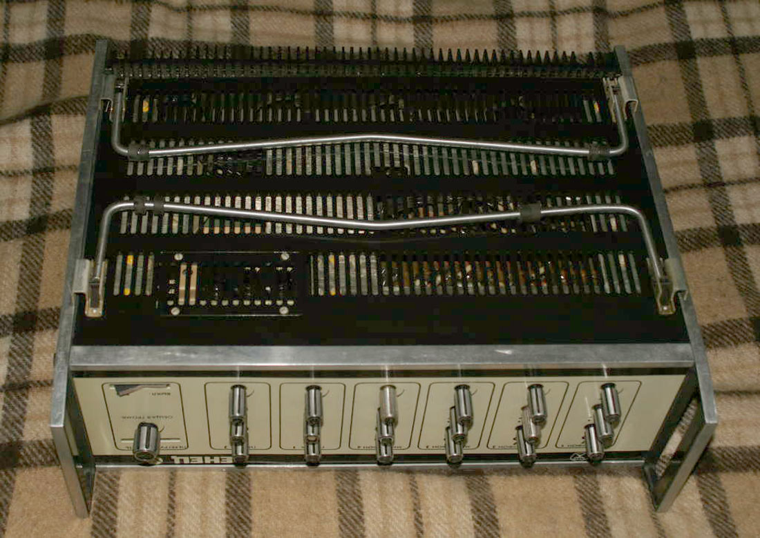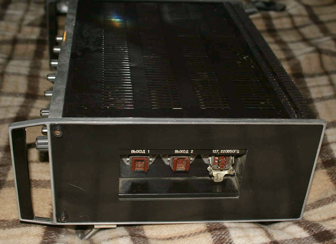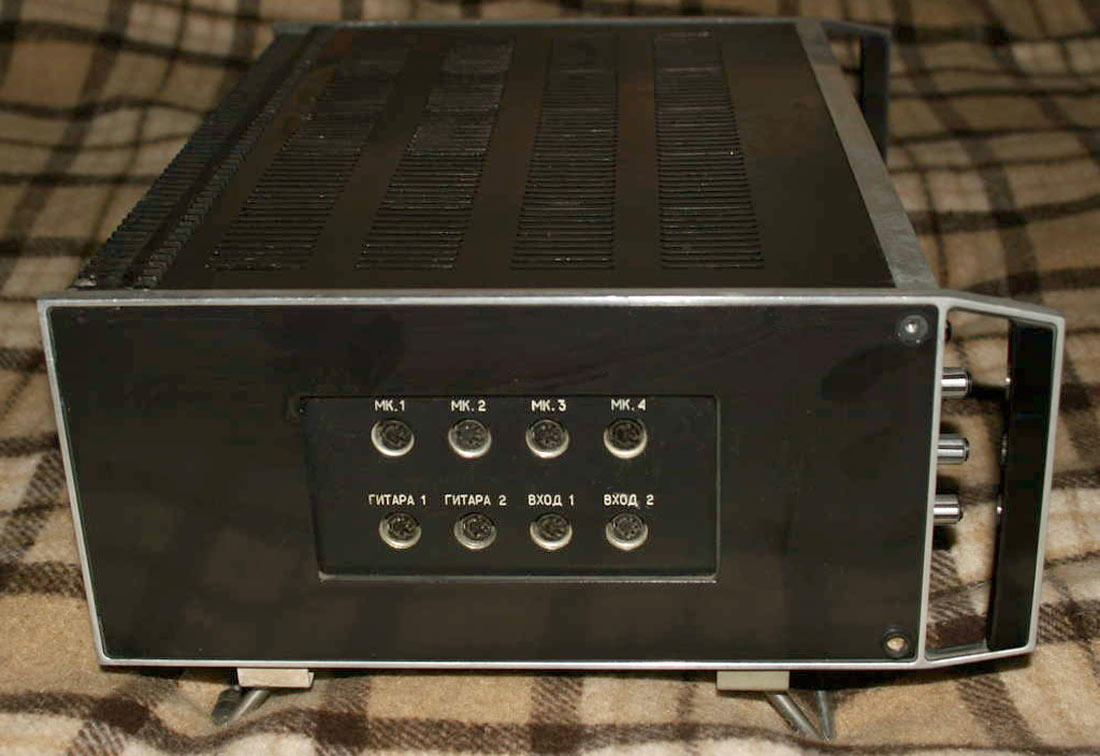 Устройство усилительно-акустическое *Венец* выпускалось предположительно с 1985 года. Усилитель*Венец предназначен для усиления сигналов от микрофонов, электрогитар, электроорганов, синтезаторов, магнитофонов и других источников. Он рассчитан на работу в составе эстрадных музыкальных ансамблей. Устройство состоит из монофонического усилителя НЧ и двух громкоговорителей (акустических систем), в каждом из которых установлено по две динамических головки типа *4А-32* и четыре динамические головки *3ГД-38*. Усилитель имеет четыре микрофонных входа, два входа для подключения электрогитар и два универсальных входа для других источников сигнала. На каждый из шести первых входов, предусмотрена регулировка уровня громкости, а так же тембра по высшим и низшим звуковым частотам. В усилителе предусмотрена электронная защита от короткого замыкания в нагрузке, имеется индикатор перегрузки, позволяющий следить за режимом его работы. Технические параметры: номинальная выходная мощность 100 Вт; диапазон частот усилителя 30...20000 Гц; КНИ не более 1%; диапазон регулировки тембра ±12 дБ; перегрузочная способность по всем входам 16 дБ; потребляемая мощность 170 Вт.