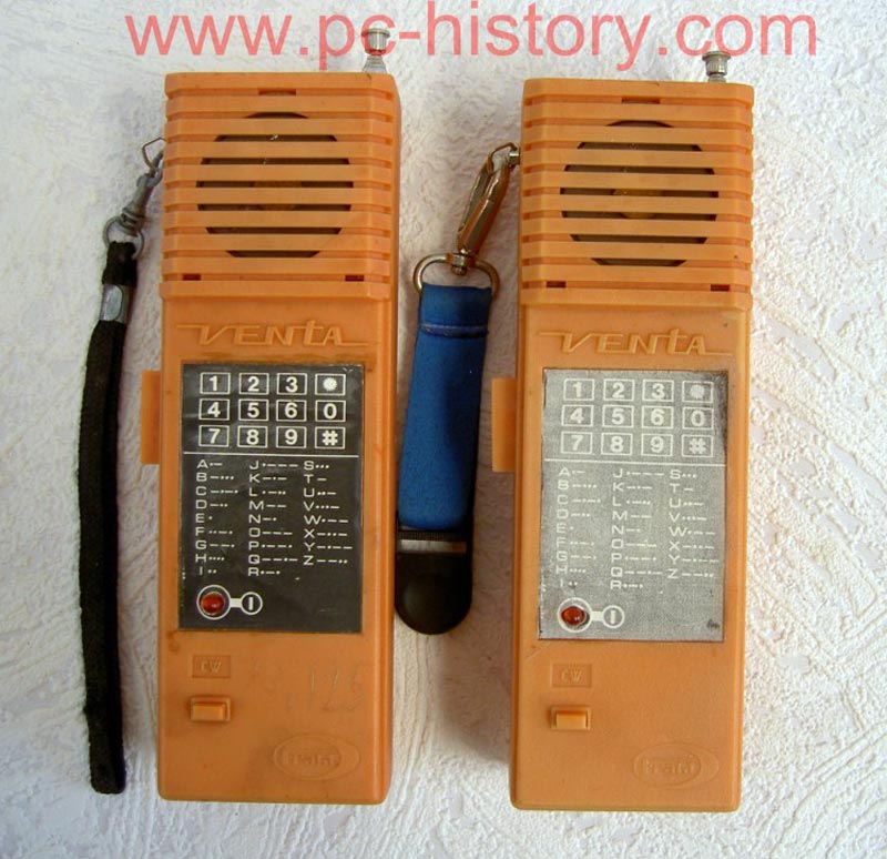Детская одноканальная радиостанция *Venta* (Вента) выпускалась предположительно с 1992 года. Предназначена для организации радиосвязи на расстоянии до 100...150 м. Телефон и тональная телеграфия. АМ. Частота 27,125 МГц. Чувствительность 10 мкВ. Выходная мощность 10 мВт. Питание: 8 элементов А-316. Производитель *Fraht*, возможно кооператив.