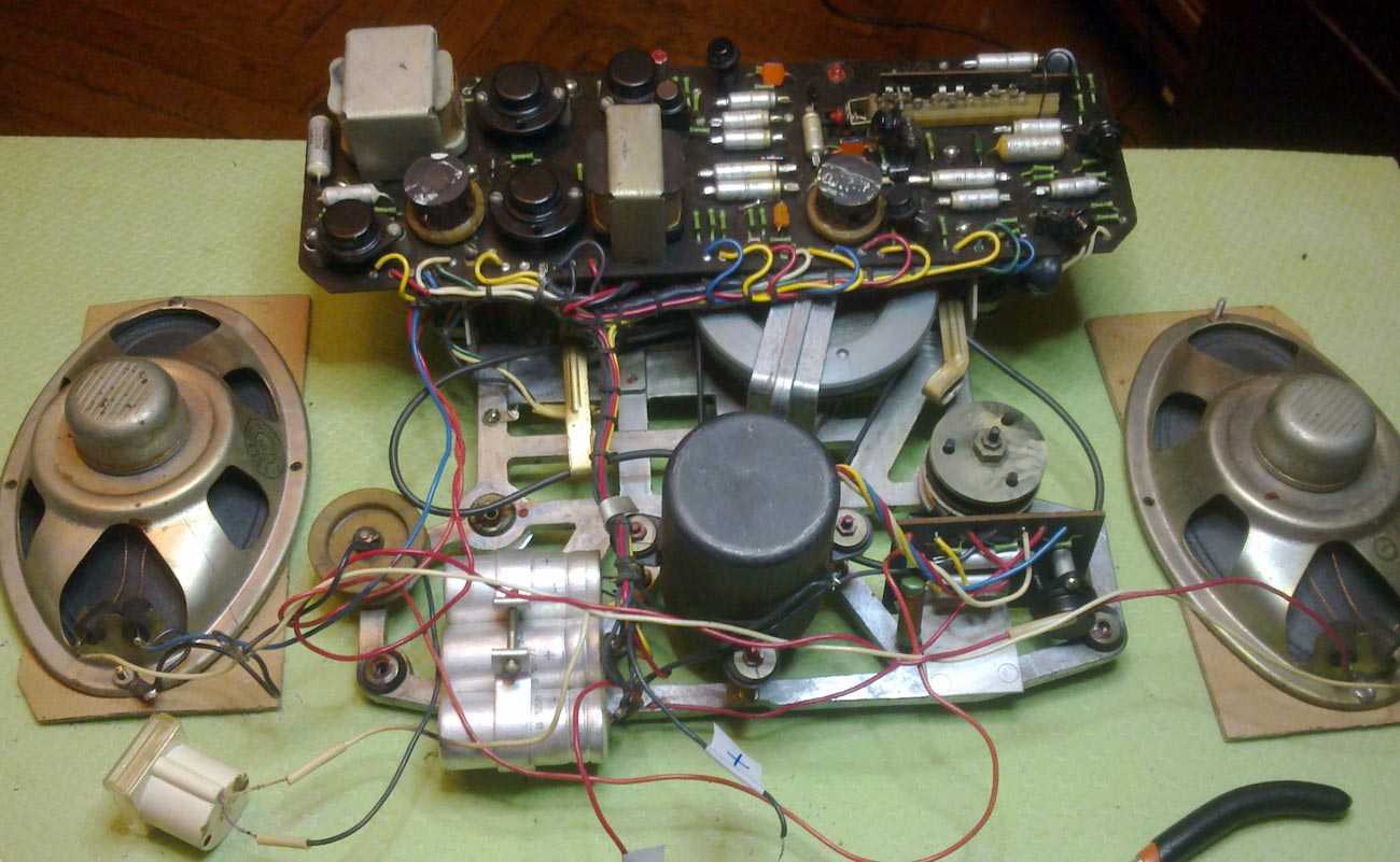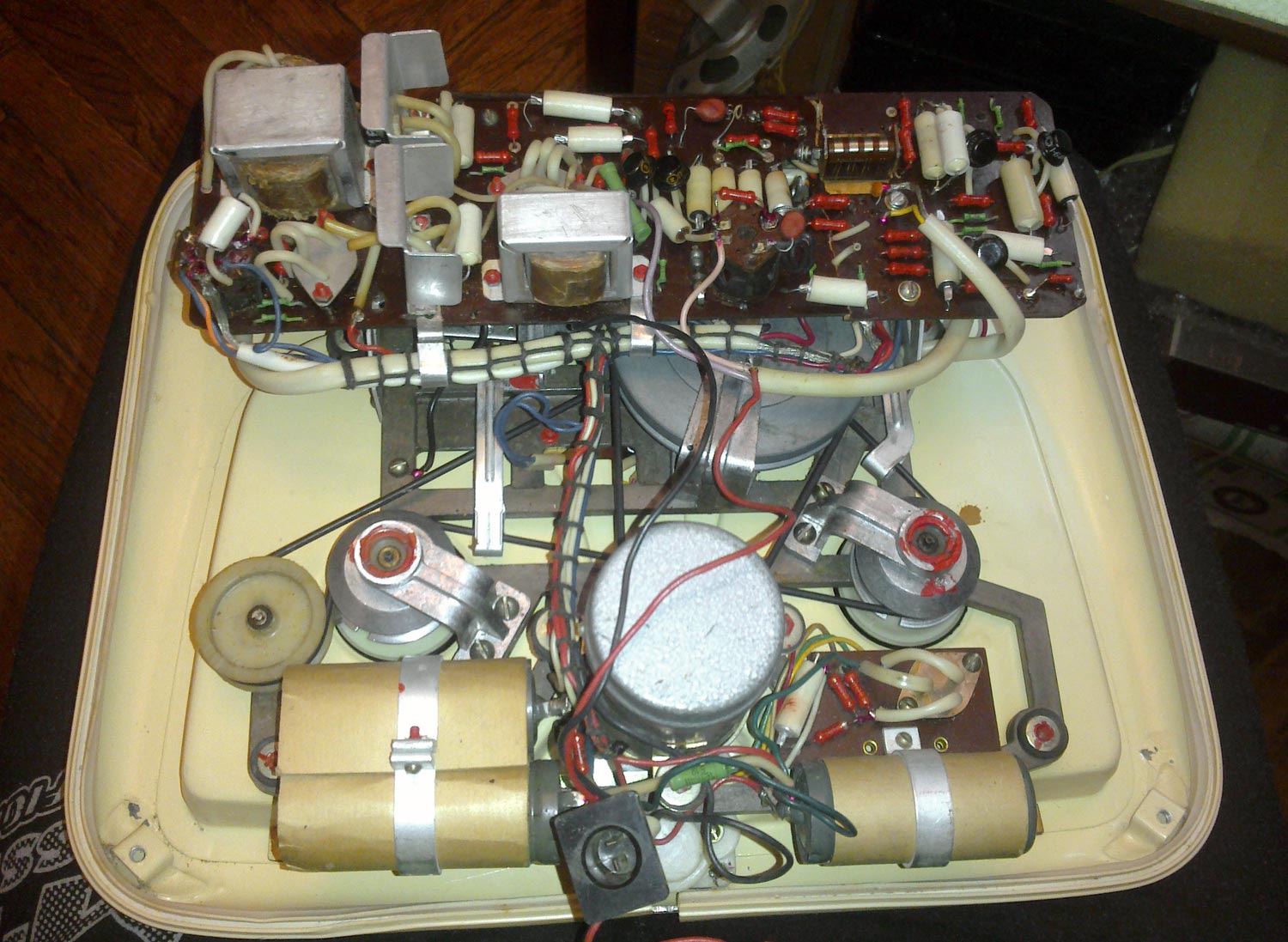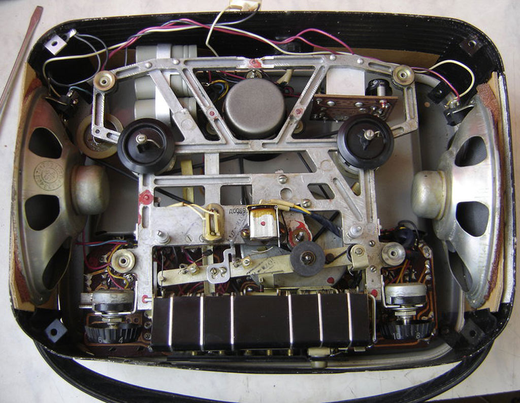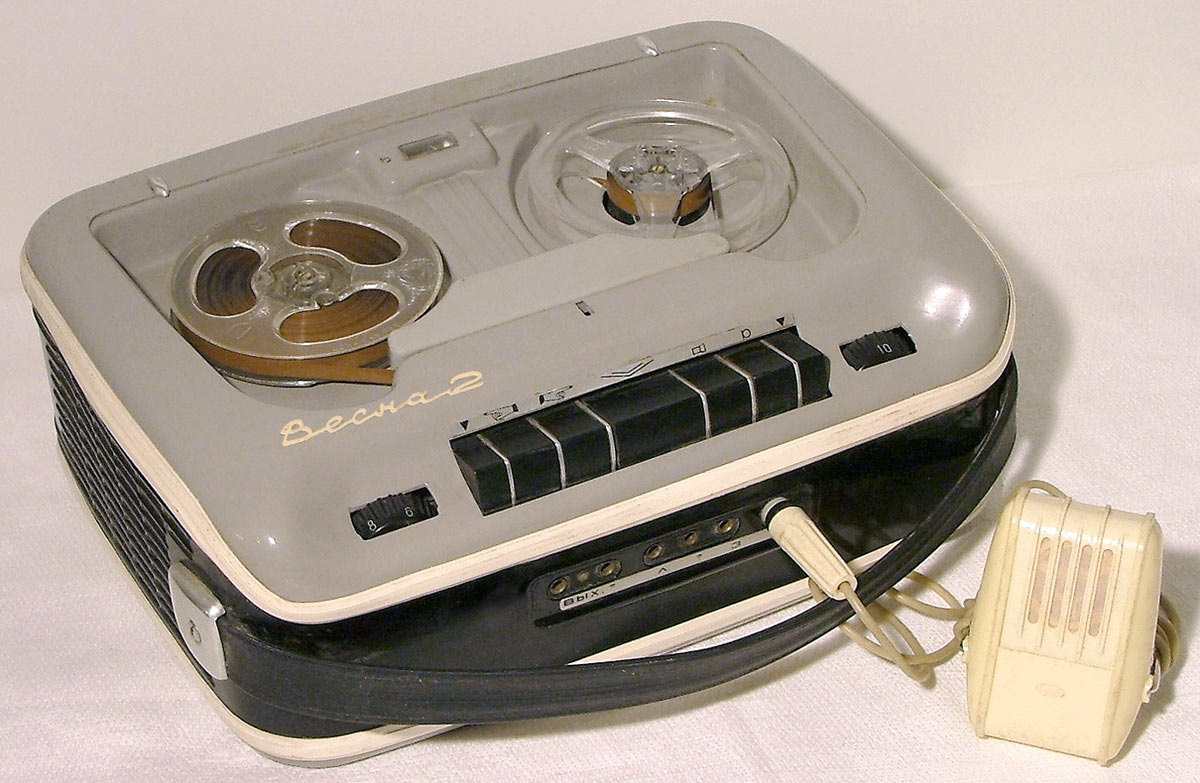 Портативные магнитофоны *Весна* и *Весна-2* с 1963 и 1964 года выпускали Киевский завод *Коммунист* и Запорожский завод передвижных электростанций. **Весна** двухдорожечный переносной магнитофон с универсальным питанием. Катушки вмещают 100 м. магнитной ленты типа 2 (6). Скорость ЛПМ - 9,53 см/сек. Есть ускоренная перемотка ленты. Диапазон частот воспроизводимых громкоговорителями 1ГД-9 - 100...6000 Гц. Номинальная выходная мощность 1 Вт. Питание от 10 элементов А-373, внешнего источника 12 В и от сети через выпрямитель. Магнитофон собран в корпусе из металла. В нём применено 11 транзисторов и 5 диодов. Габариты магнитофона 340х250х130 мм. Масса 5,5 кг. Магнитофон по оформлению почти не отличается от базового, но есть изменения в схеме. Установлены новые громкоговорители 1ГД-18, в связи с чем при снижении выходной мощности до 0,8 Вт, улучшилась экономичность, увеличилось звуковое давление и повышен диапазон частот на ЛВ от 63 до 10000 Гц, а воспроизводимых громкоговорителями от 100 до 10000 Гц. Другие параметры остались такими же как у базового магнитофона.