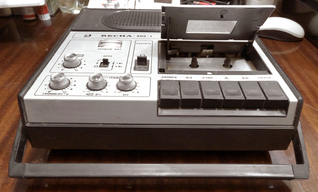 Портативный магнитофон *Весна-202-1* с начала 1983 года выпускал Запорожcкий электромашиностроительный завод *Искра*. К прежнему магнитофону **Весна-202** был применён ГОСТ 24863-81 и магнитофон стал не 2-го класса, а 2-й группы сложности и стал именоваться **Весна-202-1**. Изменений он не претерпел, разве что бесколлекторный двигатель был заменён коллекторным, хотя впоследствии ставились оба, да была заменена решётка громкоговорителя. Магнитофон имеет повышенную выходную мощность, систему ШП, ручную и автоматическую регулировку уровня записи. Контроль уровня записи осуществляется стрелочным индикатором, а расход магнитной ленты трёхдекадным механическим счётчиком. Диапазон рабочих частот магнитофона 63..12500 Гц. Питание осуществляется от 6-ти элементов типа А-373. Запись или воспроизведение производится при изменениях питающего напряжения от 5,1 до 9 В. Максимальная выходная мощность 2 Вт. Коэффициент детонации 0,4%. Габариты магнитофона - 296х276х81 мм, масса 4,2 кг. Цена 195 рублей.