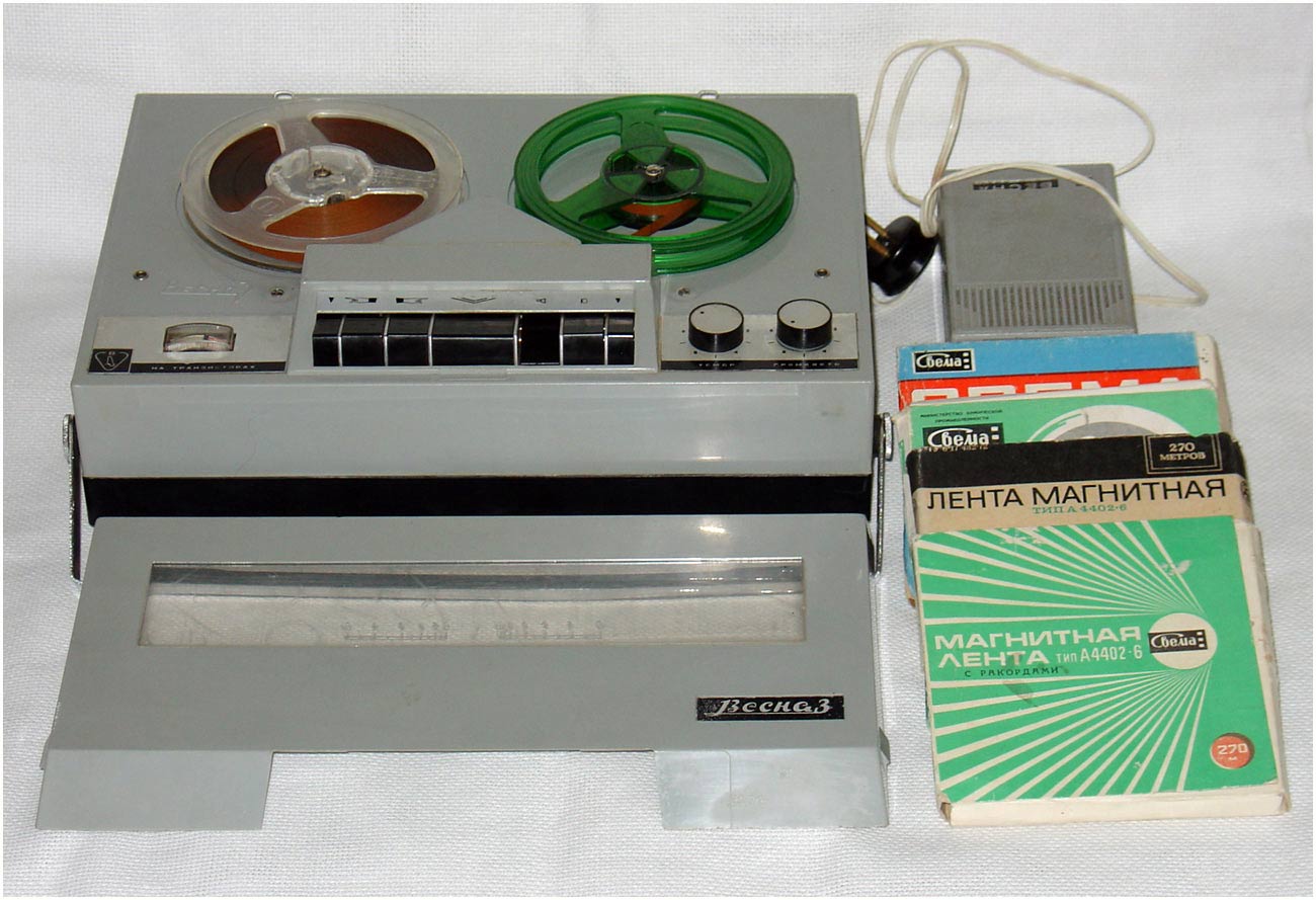 Портативный катушечный магнитофон *Весна-3* с начала 1967 года выпускал Запорожский завод передвижных электростанций. Магнитофон 3 класса *Весна-3* (последний в серии катушечных моделей Весна) рассчитан на запись и воспроизведение звуковых фонограмм с радиоприёмника, звукоснимателя, микрофона и радиосети. ЛПМ работает от двигателя ДКС-16. Скорость магнитной ленты 9,53 см/сек. Длительность записи при использовании катушек со 180 м. ленты типа 6 - 2х30 минут. При использовании ленты типа 10 время увеличивается до 2х45 минут. Диапазон рабочих частот звука на линейном выходе 63...10000 Гц, на своём громкоговорителе 100...10000 Гц. Номинальная выходная мощность 0,5 Вт. В АС установлен громкоговоритель 1ГД-28. Питание - 8 элементов А-373 или от сети через блок питания. Потребляемая от сети мощность 20 Вт. Размеры магнитофона - 358х234х121 мм, масса 5 кг. Первые магнитофоны имели другое оформление.