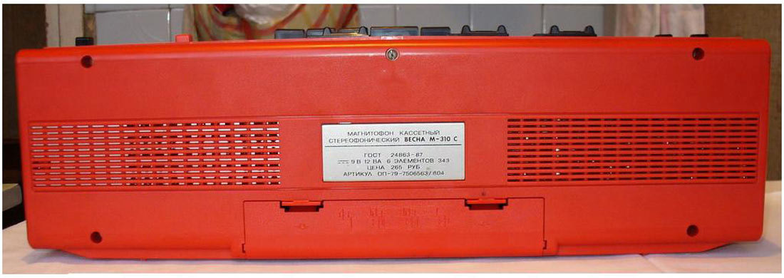 Кассетный стереофонический магнитофон *Весна-310С* с 1985 года выпускал Запорожский ЭМЗ *Искра*. Магнитофон обеспечивают запись стерео и моно фонограмм с последующим воспроизведением. Есть возможность: автоматического останова по окончании кассеты или её неисправности; автоматической регулировки уровня записи; контроля уровня записи по пиковым индикаторам (на светодиодах); регулировки стереобаланса; раздельной регулировки тембра; использования магнитных лент двух типов; автоматического переключения типов ленты. Система шумопонижения обеспечивает уменьшение помех при воспроизведении. Питание осуществляется от шести элементов 343 или от сети переменного тока, через выносной БП. Корпус магнитофонов изготовлен из ударопрочного полистирола. Цена магнитофона 265 рублей. Тип ленты А4205-3 или А4212-ЗБ. Скорость магнитной ленты 4,76 см/с. Диапазон частот при использовании ленты А4205-3 - 63...10000 Гц, А4212-ЗБ - 63...12500 Гц. Коэффициент детонации ±0,3%. Коэффициент гармоник на ЛВ - 4,5%. Относительный уровень шумов и помех в канале З-В на ленте А4205-3 без СШ -48 дБ, с СШ -56 дБ. Номинальная выходная мощность 2х0,5 Вт, максимальная 2х1,2 Вт. Габариты модели 425х130х85 мм. Масса 2,2 кг. С 1987 года магнитофон именовался *Весна М-310С*.
