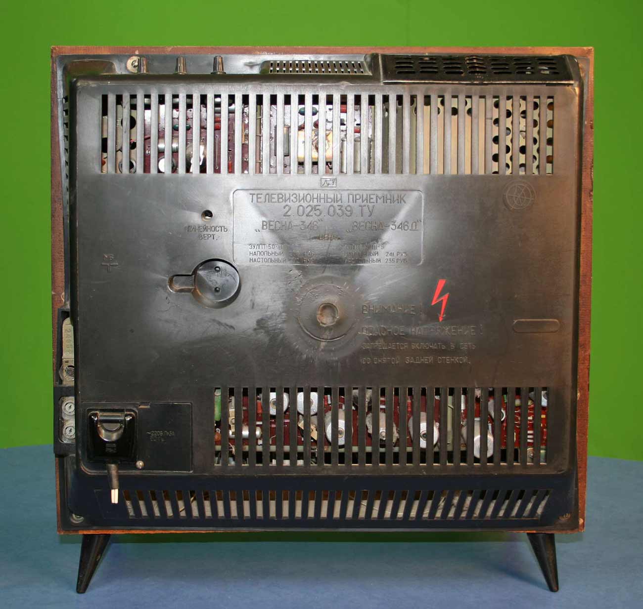 Телевизор *Весна-346/Д* с 1983 года выпускал Днепропетровский радиозавод. Унифицированный ч/б телевизор **Весна-346** и **Весна-346Д** тип 3УЛПТ-50-III-8/9 выпускали в настольном и напольном вариантах. Телевизор предназначен для работы на любом канале МВ или ДМВ диапазона (индекс Д). Телевизор имеет кинескоп с диагональю 50 см. Чувствительность в МВ диапазоне 50 мкВ и 90 мкВ в ДМВ. Номинальная выходная мощность 1 Вт. Диапазон воспроизводимых частот 100...10000 Гц. Потребляемая мощность 155 Вт. Масса модели 27 кг. В телевизоре имеются разъёмы для головных телефонов, при этом можно отключить громкоговоритель. Предусмотрены системы АРУ и АПЧ и Ф строчной развёртки. У телевизора был и двойник, это телевизор **Янтарь-346/Д**, который выпускался этим же заводом для расширения ассортимента наименований.
