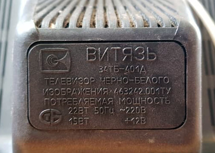 Телевизор чёрно-белого изображения *Витязь 34ТБ-401Д* выпускался с 1997 года Витебским заводом цветных телевизоров. Малогабаритный полупроводниково-интегральный телевизор чёрно-белого изображения *Витязь 34ТБ-401Д* предназначен для приёма программ телевидения в диапазонах МВ и ДМВ. Диагональ экрана 34 см. Возможность настройки на 90 каналов. Вывод на экран состояния регулировок. Автоматический поиск и настройка каналов в МВ/ДМВ диапазонах, включая кабельный диапазон. Стандарты D/K и B/G. Бесшумный поиск каналов. Номинальная выходная мощность канала звука 1,5 Вт. Возможность питания от автономного источника 12 В. Питание от электросети, напряжением 198...242 В. Потребляемая мощность 30 Вт, при питании от автономного источника 20 Вт. Габариты телевизора - 400 х 380 х 360 мм. Масса 8,1 кг. С 1998 года завод выпускал аналогичный телевизор с наименованием *Витязь 34ТБ-401Д-1*.