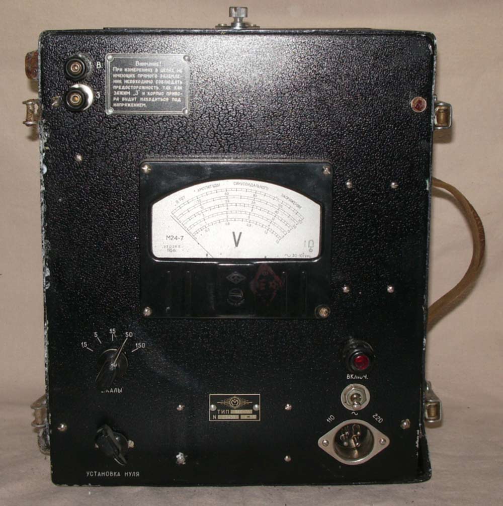 Вольтметр катодный (ламповый) *ВКС-7б* выпускался с 1948 года Горьковским заводом им. Фрунзе и Минским радиозаводом. По оформлению приборы разных заводов несколько отличаются. Вольтметр предназначен для измерения напряжения переменного тока с частотой от 20 Гц до 100мГц. Пределы измерений от 0,1 до 150 В на пяти шкалах: 0-1.5; 0-5; 0-15; 0-50 и 0-150 В. Погрешность прибора 3% от полного значения шкалы на 5 шкалах при синусоидальном напряжении. Точность измерения с делителем ДНЕ-2 не более +/-5%. Частотная погрешность в диапазоне частот от 30 Гц до 50 мГц не более +/-1%, на частоте 100мГц не более +/-3%. Входное активное сопротивление: при нижних частотах 4 мОм; при частоте 10 мГц 450 кОм; при частоте 50 мГц 300 кОм. Размеры прибора 200х285х340 мм. Вес 11 кг.