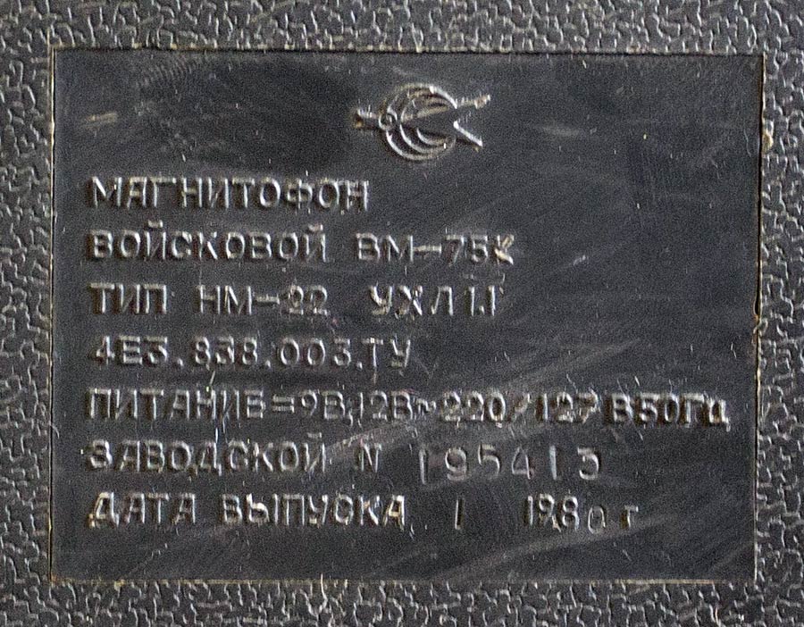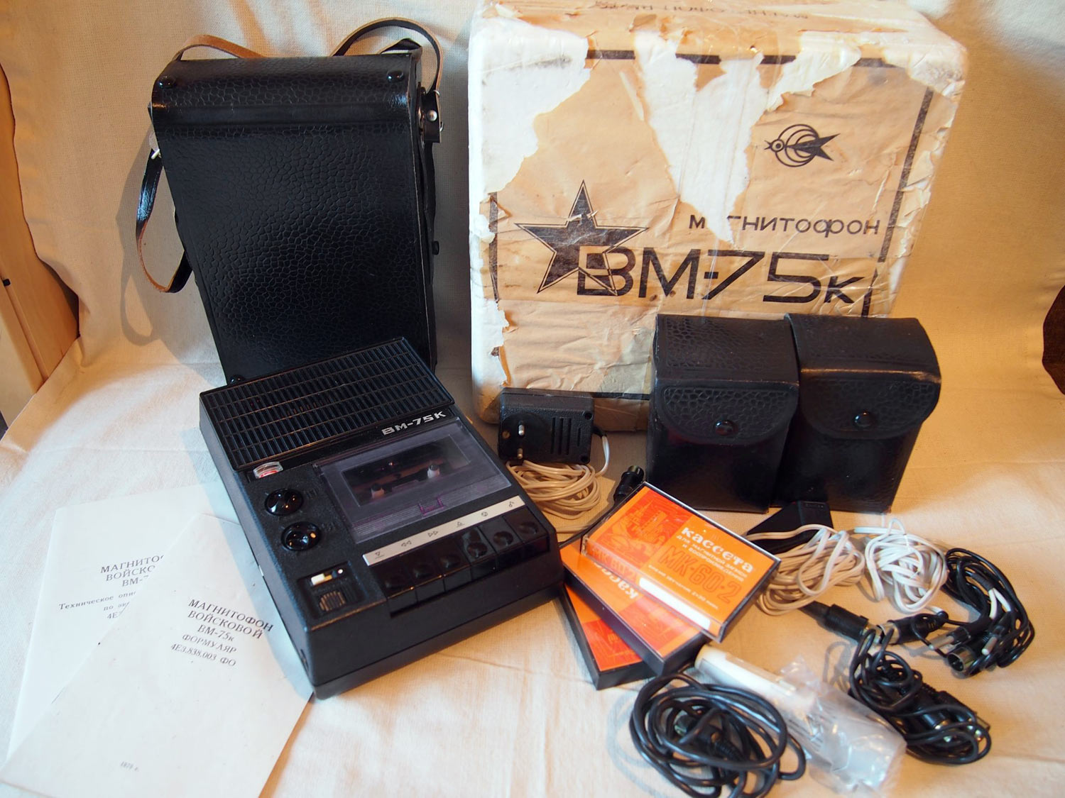 Портативный войсковой кассетный магнитофон *ВМ-75К* с 1978 года выпускал Арзамасский ПСЗ имени 50-летия СССР. Магнитофон **ВМ-75К** (буква К кассетный) предназначен для записи и воспроизведения речи и музыки с применением кассет МК. Магнитофон обеспечивает: запись от микрофона, звукоснимателя, радиолинии, приёмника, перезапись с других магнитофонов, стирание записи, воспроизведение записи через ЛВ, воспроизведение записи через внутренний громкоговоритель или головные телефоны, ускоренную перемотку ленты в обоих направлениях, работу на ходу. Питание от элементов 343, сети, внешнего аккумулятора. Скорость ленты 4,76 и 2,38 см/с. Диапазон рабочих частот 63...10000 Гц. Габариты магнитофона - 265х175х85 мм. Масса 2,5 кг. Магнитофоны выпускались со стрелочным индикатором, ручной регулировкой уровня записи и контролем питания и без индикатора, с системой АРУЗ.