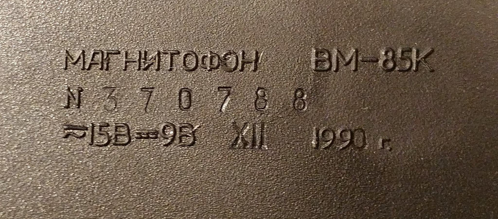 Портативный войсковой кассетный магнитофон *ВМ-85к* с 1990 года выпускал Арзамасский приборостроительный завод имени 50-летия СССР. Магнитофон заменил прежнюю модель *ВМ-75к*. Обеспечивает запись с микрофона, звукоснимателя, радиолинии, радио или телевизионного приёмника, перезапись с другого магнитофона, с прослушиванием записываемой программы, стирание записи, воспроизведение через ЛВ, прослушивание записи на громкоговоритель и головные телефоны, ускоренную перемотку ленты, работу на ходу. Питание: 6 элементов А-343, аккумуляторы, сеть или внешний источник. Скорость ленты 4,76 см/с и 2,38 см/с. Диапазон частот на ЛВ 63...10000 Гц. Вес магнитофона 2,5 кг.