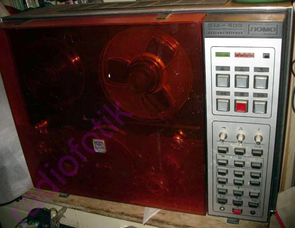 Сетевой катушечный видеомагнитофон *ВМ Ломо-403* выпускался предположительно с 1979 года Ленинградским оптико-механическим объединением. ВМ входит в комплекс малогабаритной аппаратуры для магнитной записи ТВ сигналов. Он предназначен для записи и воспроизведения цветных и ч/б видеосигналов и звукового сопровождения. Запись и воспроизведение возможны с любого и на любом цветном или ч/б телевизоре при установке в нём приставки сопряжения. Скорость протяжки магнитной ленты - 19,03 см/сек. Скорость протяжки ленты относительно зазоров магнитной видеоголовки - 10,86 м/сек. Время непрерывной записи 60 минут. Чёткость - 450 строк. Полоса видеочастот - 3,8 МГц. Полоса рабочих звуковых частот - 63...12500 Гц. Отношение сигнал/шум по видеоканалу 40 дБ, по каналу звука 45 дБ. Габариты аппарата - 600 х 430 х 320 мм. Масса 28 кг. Масса всего комплекта 40 кг.