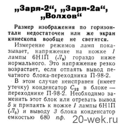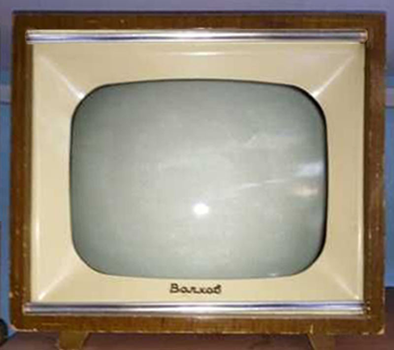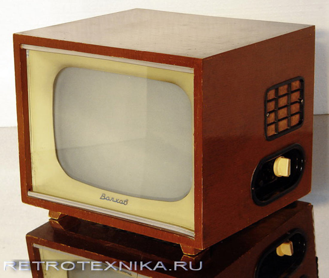 Телевизионный приёмник чёрно-белого изображения *Волхов* с 1960 года выпускал Новгородский телевизионный завод. Телевизор **Волхов** рассчитан на работу в двенадцати каналах. Он имеет 13 ламп, 8 диодов и кинескоп 35ЛК2Б с размером экрана 285х215 мм. Чувствительность телевизора в 275 мкВ делает возможным приём телевизионных студий с наружной антенной на расстоянии до 50 км. По схеме параметрам и конструкции телевизор сходен с моделями **Заря-2а** и **Спутник**. В телевизоре впервые учтён ряд требований нормали на телевизоры 3 класса, а именно: приём в 12 каналах, АРУ и прослушивание звукового сопровождения на наушники при выключенном динамике, гнёзда наушников можно использовать и для записи звука на магнитофон. Громкоговоритель 0,5ГД-10 расположен справа футляра и обеспечивает достаточную громкость в небольшом помещении. Телевизор собран в деревянном полированном футляре с имитацией под красное дерево. Размеры телевизора 380х350х420 мм, масса 18 кг. Задняя стенка выполнена из металла, в виде усечённой пирамиды. На ней имеются отверстия для улучшения теплового режима. Конструкция шасси и его вертикальное расположение и съемный задний кожух обеспечивают доступ к лампам и другим деталям. Основные ручки управления выведены на правую боковую стенку футляра, а вспомогательные на заднюю. Экран кинескопа защищён стеклом. Питается ТВ от сети 127 или 220 В. Потребляемая мощность 130 Вт. Цена телевизора 168 рублей после реформы 1961 года. Радио №4/1965, ст. 30