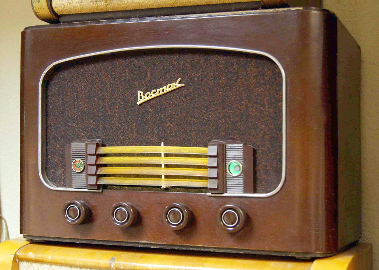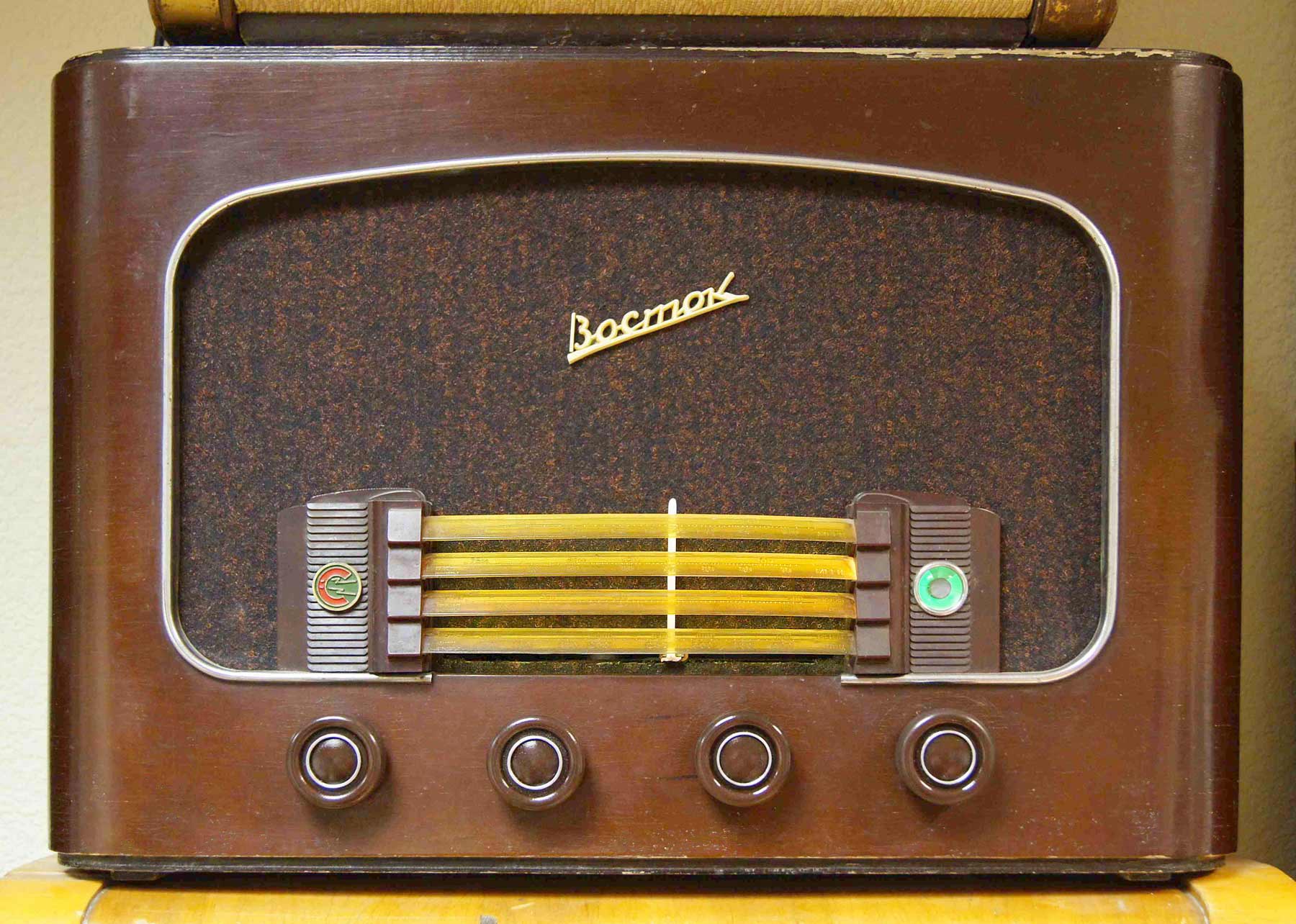 Радиоприёмник сетевой ламповый *Восток-49* с 1949 года выпускал Новосибирский завод *Электросигнал*. **Восток-49** собран на 6-ти лампах по супергетеродинной схеме. Особенностью РП является шкала, выполненная в виде четырёх полосок из органического стекла. Каждая полоска имеет градуировку, соответствующая диапазону. При включении РП, лампочки подсвечивают полоску одного диапазона. Диапазоны ДВ 150...410 кГц, СВ 520...1500 кГц, КВ-1 4...9,8 мГц, КВ-2 11,5...16,1 мГц. Чувствительность в диапазонах ДВ, СВ 200 мкВ, КВ 300 мкВ. Избирательность на ДВ, СВ 26 дБ, КВ 20 дБ. Диапазон воспроизводимых частот 100...4000 Гц, с гнёзд звукоснимателя 80...6000 Гц. Номинальная выходная мощность УНЧ 1,5 Вт. Потребляемая от сети мощность 80 Вт. Закончен выпуск радиоприёмника в 1954 году.