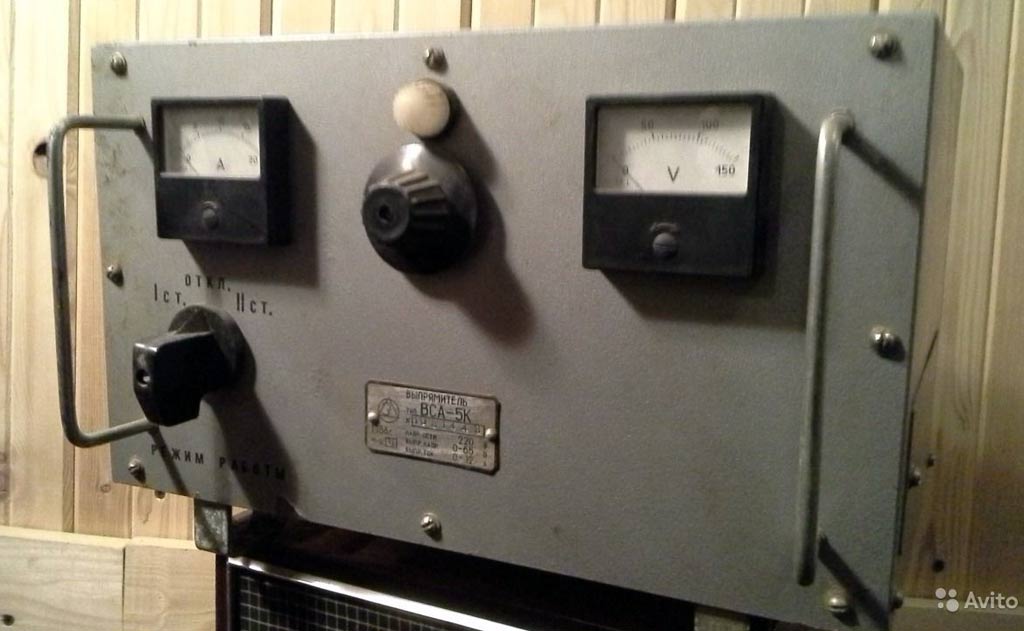 Выпрямитель селеновый *ВСА-5К* выпускался предположительно с 1963 года. Производился до начала 90-х. Несколько раз модернизировался. Предназначен для зарядки аккумуляторных батарей постоянным стабилизированным током. Напряжение на выходе регулируется от 0 до 65 вольт, ток от 0 до 12 ампер. Выпрямители также могут быть использованы в качестве источников постоянного стабилированного тока, для питания радиотехнических приборов и аппаратуры. Модификации выпрямителей имели разное выходное напряжение и ток. Масса выпрямителя от 15,5 до 24 кг. Габариты 355х275х275 мм.