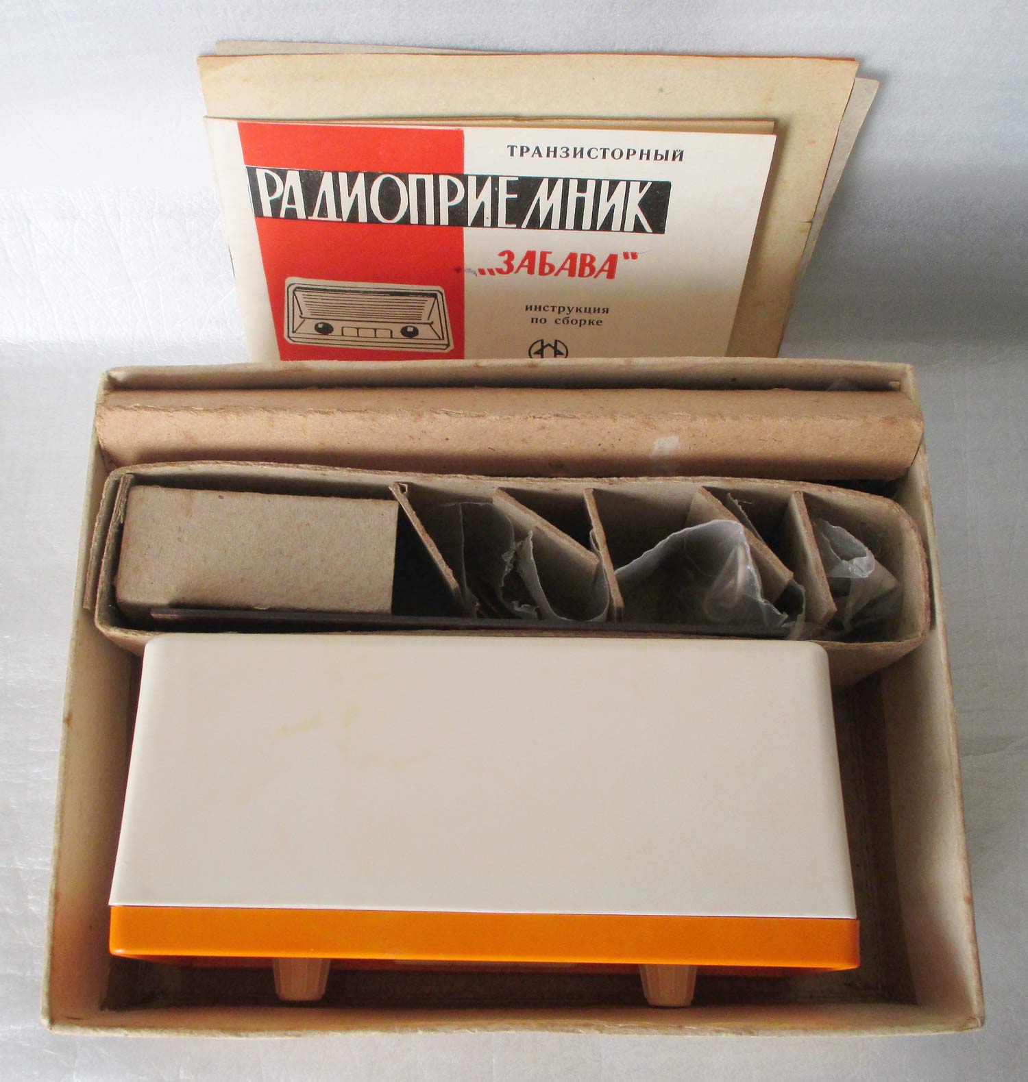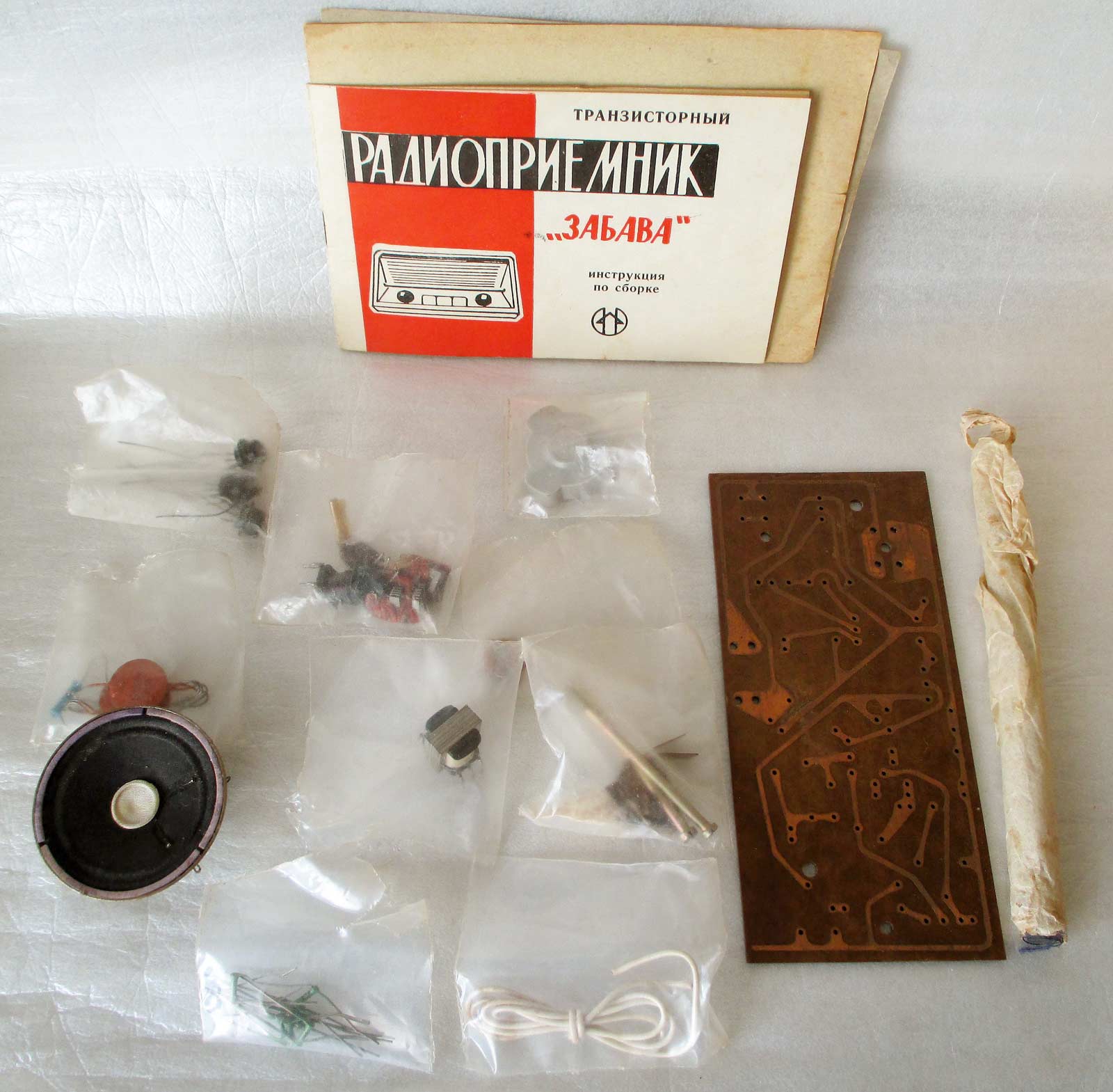 Радиоприёмник *Забава* (из радиоконструктора) с 1965 года выпускал Куйбышевский приборостроительный завод. Приёмник на 5 транзисторах и работает в диапазоне СВ. Приём осуществляется на магнитную или внешнюю антенны. Чувствительность - 20 мВ/м. Селективность - 6...8 дБ. Номинальная выходная мощность 60 мВт, максимальная 100 мВт. Диапазон воспроизводимых частот 450...3000 Гц. Питание