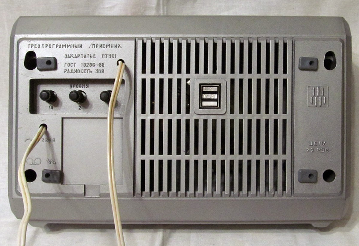 Приёмник трёхпрограммный *Закарпатье ПТ-301* с начала 1988 года выпускал Великоберезный завод *Эрстед*, Закарпатская область, Украина. ПТ предназначен для работы в сети трехпрограммного проводного вещания с напряжением 30 В. Приёмник обеспечивает приём НЧ сигнала с усилением или без и двух ВЧ сигналов с несущими частотами 78 кГц (II программа) или 120 кГц (III программа). Приёмник имеет гнездо для записи программ на магнитофон. Диапазон рабочих частот звука 160...6300 Гц. Номинальная выходная мощность 0,5 Вт. Потребляемая мощность 4 Вт.