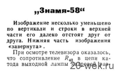 Телевизионный приёмник *Знамя-58* с 1958 года выпускал Ленинградский завод имени Козицкого. Телевизор **Знамя-58** модернизация модели **Знамя**, а выполнен по конструкции телевизора **Весна**. Телевизор имеет ПТК на 12 каналов, 15 радиоламп, 7 диодов и кинескоп 43ЛК2Б. Размеры изображения 340х255 мм. ВЧ тракт выполнен по супергетеродинной одноканальной схеме. ПЧ изображения 34,25, звука 27,75 МГц. Чувствительность модели 200 мкВ, четкость в центре экрана около 500 строк. Полоса воспроизводимых звуковых частот 100...6000 Гц. Звуковое давление от громкоговорителей типа 2ГД3 и 1ГД9 - 4 бар. Потребляемая от сети мощность 130 Вт. Футляр из фанеры, имитирующей ценные породы. Размеры модели 520 х 495 х 475 мм. Масса 28 кг. Телевизор имеет ручку корректора чёткости, гнёзда головных телефонов и выключатель звука. На переднюю панель ТВ выведены 2 сдвоенные ручки управления: левая - регулятор громкости с выключателем и яркости; правая - контрастности и чёткости. Ручки для регулятора тембра, ПТК и гетеродина размещены справа футляра в пластмассовой нише. Вспомогательные ручки выведены на заднюю стенку. В 1961 году телевизор был модернизирован в **Знамя-58М**. По параметрам и внешнему виду он аналогичен базовому телевизору, а его достаточно поздний выпуск обусловлен повышенным спросом. Высокое качество оформления, устойчивая работа, хорошее качество изображения и звук телевизора *Знамя-58* позволили ему в весьма короткий срок завоевать признание потребителей в своей стране, так и за рубежом и получить *Гран-При* на всемирной выставке *Экспо-58*. Радио №4/1965, ст. 30