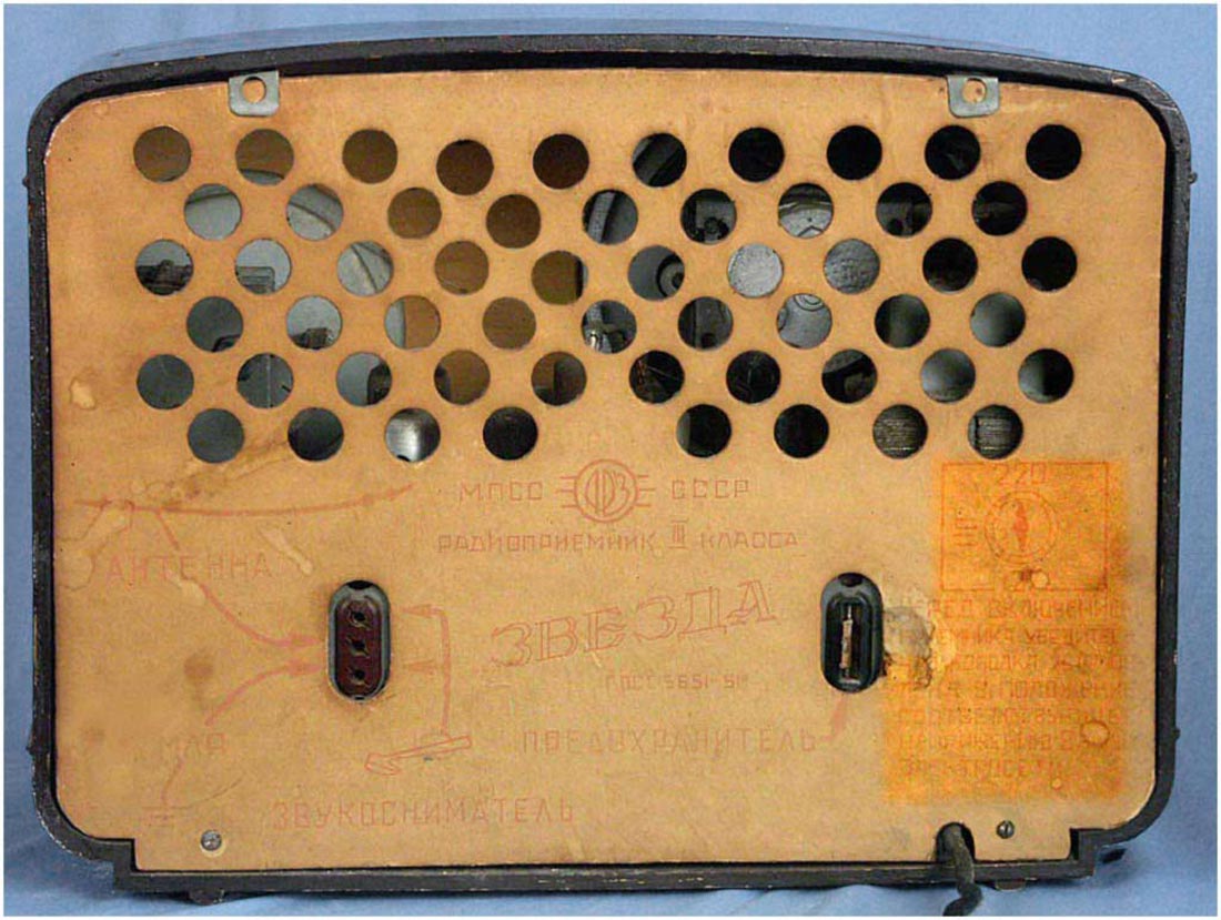 Радиоприёмник сетевой ламповый *Звезда* с 1951 года выпускал Александровский радиозавод. Радиоприёмник 3 класса **Звезда** был выпущен ограниченной серией по новому Государственному общесоюзному стандарту на радиовещательные приёмники № 5651-51. Новый приёмник был создан на базе серийного приёмника **АРЗ-49** поэтому здесь использовались многие элементы этого аппарата. Радиоприёмник **Звезда** работает в диапазонах ДВ - 150...415 кгц, СВ - 520...1600 кгц, КВ - 3,95...12,1 мгц. Промежуточная частота - 465 кгц. Избирательность по соседнему каналу на всех диапазонах около 26 дб, по зеркальному в диапазонах ДВ 24 дб, СВ 20 дб, КВ 10 дб. Чувствительность в диапазонах ДВ, СВ 150 мкв, КВ 300 мкв. Радиоприёмник имеет эффективную АРУ. Номинальная выходная мощность - 0,5 вт. Диапазон частот, воспроизводимых громкоговорителем 1ГДМ-1,5 - 150...3500 гц. Потребляемая мощность от электросети - 50 вт. Модель имеет гнёзда подключения антенны, заземления и звукоснимателя. Из-за нестабильной работы гетеродина в диапазоне КВ, особенно в верхней части диапазона радиоприёмник вскоре был снят с производства.