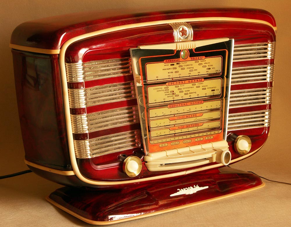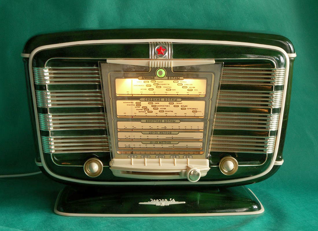 Радиоприёмник сетевой ламповый *Звезда-54* со II-кв 1954 года выпускали Харьковский завод *Коммунар* и Московский завод *Мосприбор*. Выпуск радиоприёмника был достаточно значимым событием середины пятидесятых годов в СССР. Приёмник не вписывался в привычную линейку моделей унылых и серых приёмников и радиол в деревянных футлярах, как близнецы похожих друг на друга и не меняющиеся по оформлению годами. Средства массовой информации в основном в газетных и журнальных изданиях тех лет очень эффектно описывали появление радиоприёмника *Звезда-54* как огромный прорыв в оформительском дизайне, как последний писк моды, что давало людям надежду о наступлении новой, светлой жизни. На самом деле всё было куда проще и прозаичней. Радиоприёмник *Звезда-54* по своему внешнему оформлению полная копия французского радиоприёмника *Excelsior-52* выпуска 1952 года. Точно не установлено каким образом французский приёмник попал в ИРПА. По некоторым данным его, как подарок привезли дипломаты, посещавшие Францию в 1952 году по вопросу независимости Австрии. По другой версии радиоприёмник был специально закуплен для копирования и выпуска по распоряжению высшего руководства. Ещё один штрих, имеющий отношение к выпуску радиоприёмника: B послевоенные годы правительством CCCР было принято решение, предусматривающее выпуск оборонными предприятиями СССР вместе со специальной продукцией также и товаров ширпотреба. B соответствии c этим c 1952 года Всесоюзным научно-исследовательским институтом радиовещательного приёма и акустики имени А.С.Попова, сокращённо *ИРПА*, совместно с заводом **Коммунар** (Харьков, Украина) началась разработка и подготовка конвейера, к серийному выпуску радиоприёмника **Звезда-54**. В 1954 году производство приёмника параллельно было передано и на завод Мосприбор (бывший велозавод). B третьем квартале 1954 года радиоприёмник был модернизирован. Модернизация коснулась шасси модели, которое стало вертикальным, для облегчения технологических процессов и расширения цветовой гаммы футляра (красный и зелёный, других цветов не было). Оба варианта, модернизированный и обычный в футлярах двух цветов выпускали оба завода также параллельно, но приёмников в красном футляре было выпущено намного больше. Bсего, а модель производились с 1954 по 1959 год двумя заводами было выпущено 674.000 приёмников **Звeздa-54**. Часто сбивает с толку логотип ИШ на задней крышке или в инструкции аппарата. ИШ - изделие ширпотреба.