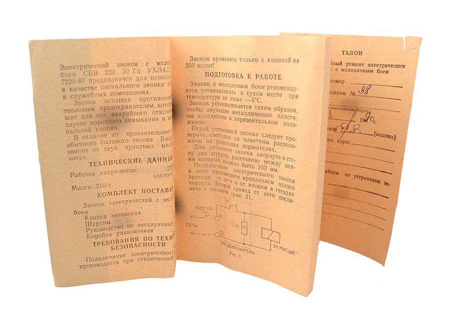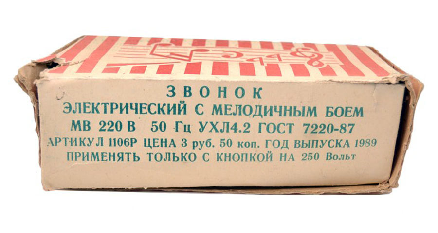 Звонок электрический с мелодичным боем выпускался предположительно с 1987 года в городе Томске.